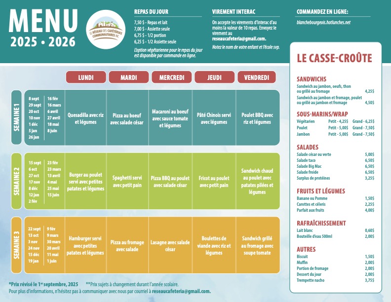 pour télécharger notre menu